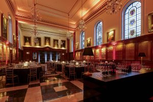 The Hall, with its oak panelling, chandeliers and stained glass windows, provides a striking setting for formal dining and award presentations. During the summer months, the three-acre private Garden offers an elegant space for pre-dinner receptions.