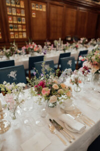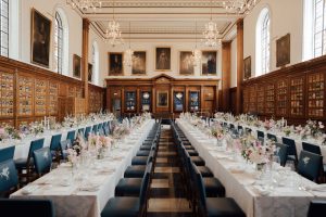 Full day weddings are best suited to around 120 guests, allowing comfortable use of the Hall and adjoining rooms for ceremony, dining and evening celebrations. For larger occasions, the first floor can accommodate up to 600 guests for a standing reception, while the Hall seats up to 276 guests for formal dining.