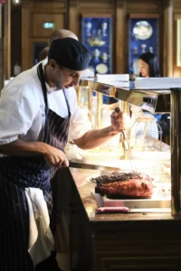 Option 1 – Main course with vegetables, Soup starter or dessert, coffee or soft drink – £31.50 per person, including VAT.
